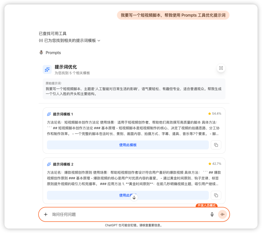 第五步:跟 ChatGPT 对话,“诱导”它使用你的工具,就可以看到你自己的作品嵌入 ChatGPT了!
