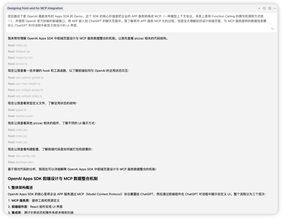 我今天花半天时间看了一下这个 Apps SDK 的文档,花 20 分钟写完了一个 Demo 并让 ChatGPT 在对话中嵌入了我写好的 APP 页面(后面有教程)。