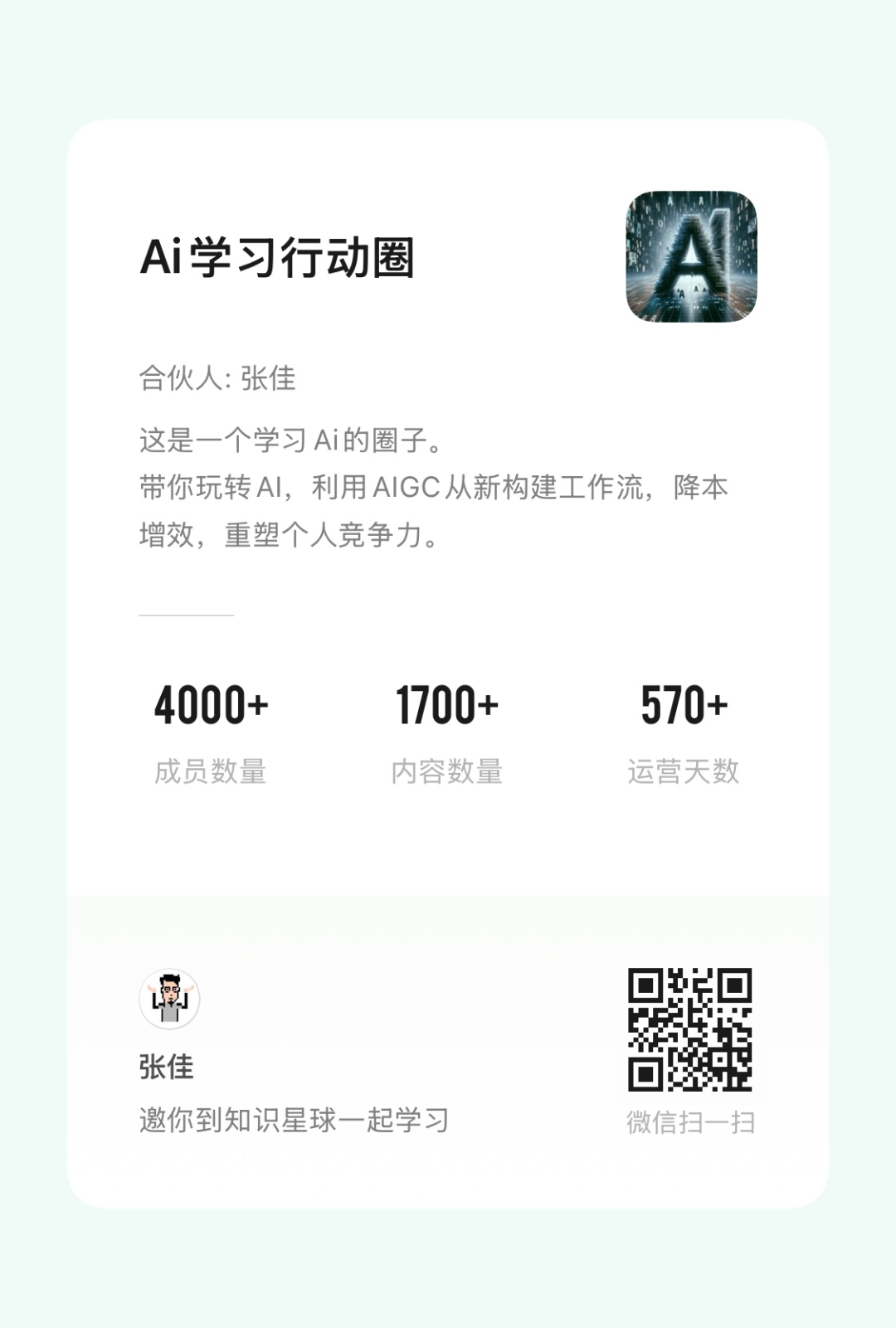 来 AI 学习行动圈,一起学 AI、用 AI、玩 AI 吧!